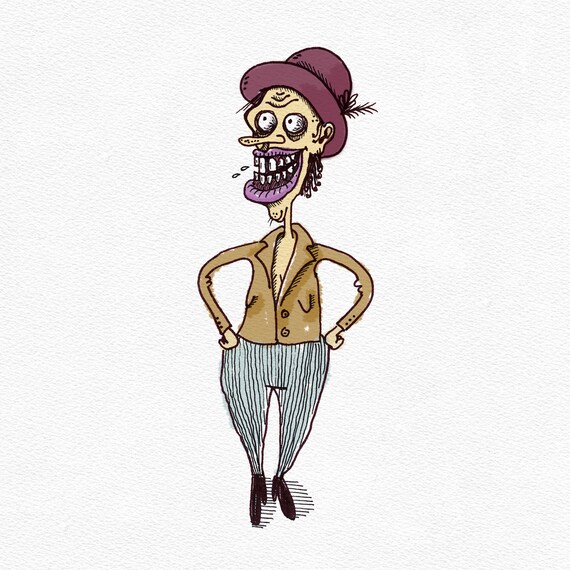 Hand Drawn Art Print Of A Funny Cartoon Character Etsy