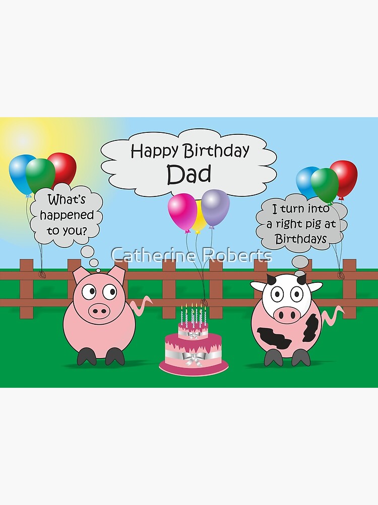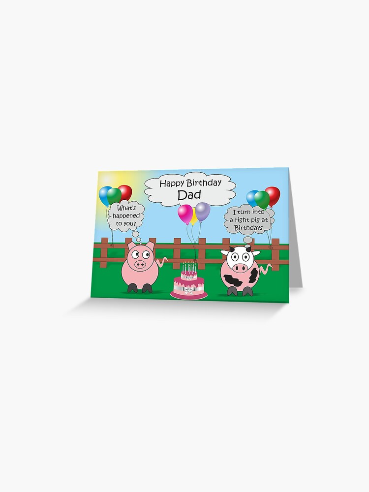 Dad Funny Animals Pig Cow Humor Cute Birthday Greeting Card By